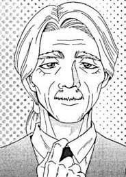 When first introduced, he is shown wearing old, worn-out clothes and an old straw hat. He has long gray, frizzy old hair that reaches down to the bottom of his neck, a thick gray mustache, an unkempt beard, and thick eyebrows, he looks tired most of a time and has noticeable bags and wrinkles under his eyes. Later on in the series, he is shown with a ponytail, well combed gray hair, and an open middle part that exposes his forehead. He no longer has a beard but still looks very old contrary to his age. He is most of the time shown wearing a suit with a white outer part and a red tie when helping Nakanishi Kouta perform.